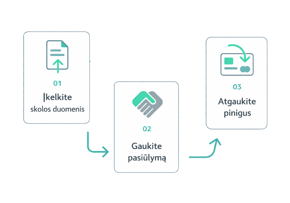 Aiškūs žingsniai nuo skolos paskelbimo iki sandorio užbaigimo.